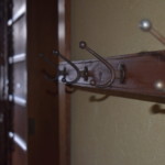 中廊下に設置されたフックボード、これなども紐を掛けて引っ張り合いをして折ってしまった。同じものが無くお袋が仕方無くありあわせの樹脂製のフックを付けていた。